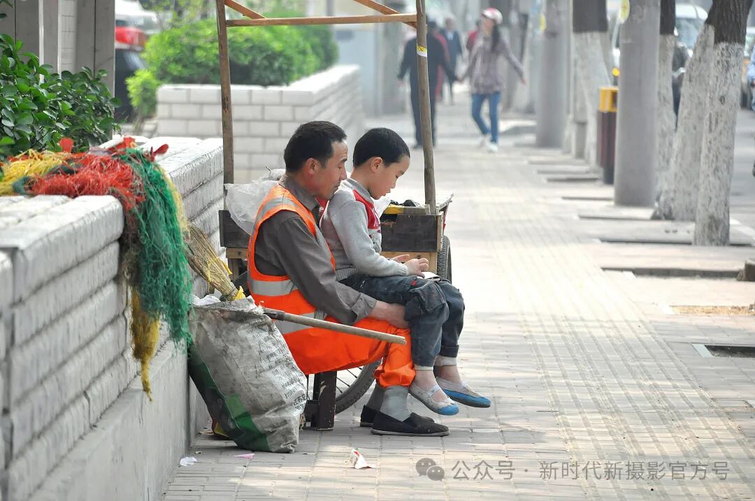 《周末守岗位,街头享天伦》 蒋士杰/摄