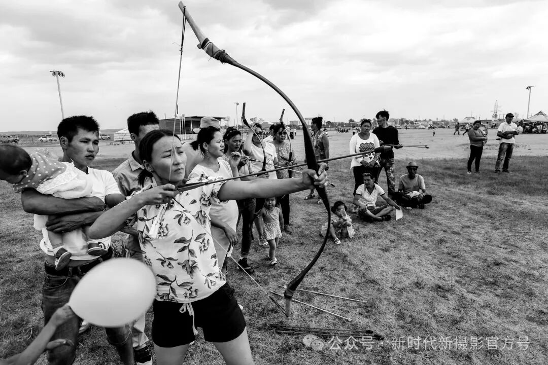 齐汉斌老师的《蒙古女射手》这张摄影作品令人印象深刻,它以黑白摄影风格捕捉了蒙古国女性射箭的生动瞬间。首先,照片中女性专注的神情和准确的动作展示了射箭运动的魅力,同时也体现了蒙古国文化的独特之处。周围观众的参与和热情,更是增添了照片的生动性和真实感。