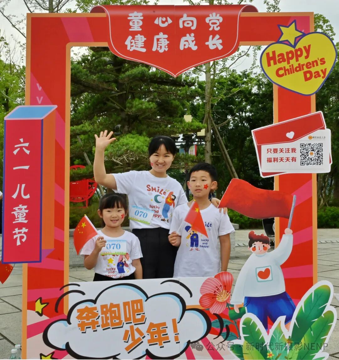 王雪铭老师的《少年成长》这张摄影作品生动捕捉了儿童节期间的欢乐瞬间,充满了节日的喜庆氛围和家庭的温馨。照片中,孩子们手持国旗和标志,背景横幅上的文字“童心向党健康成长”和“六一儿童节”强调了节日的主题和孩子们对党的热爱。红色与白色的装饰元素增添了节日的喜庆感,同时也传递了积极向上的正能量。
