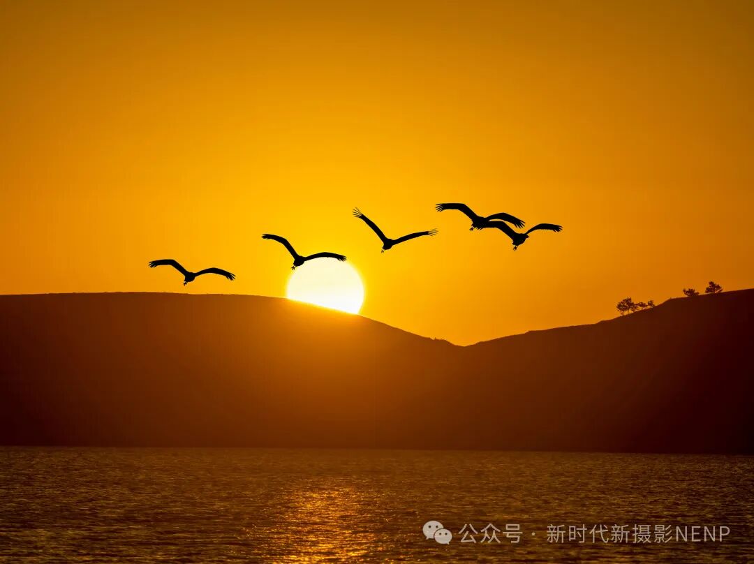 曾三东老师的《新年第一缕晨光》这张摄影作品,无疑是一幅捕捉大自然宁静与美丽瞬间的杰作。画面中的太阳从地平线缓缓升起,象征着新年的希望和新的开始。几只鸟儿在天空中自由翱翔,为这宁静的早晨增添了生机与活力。