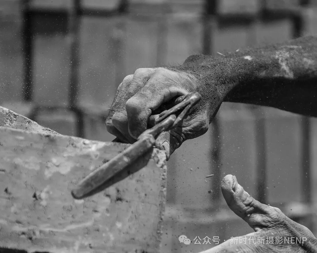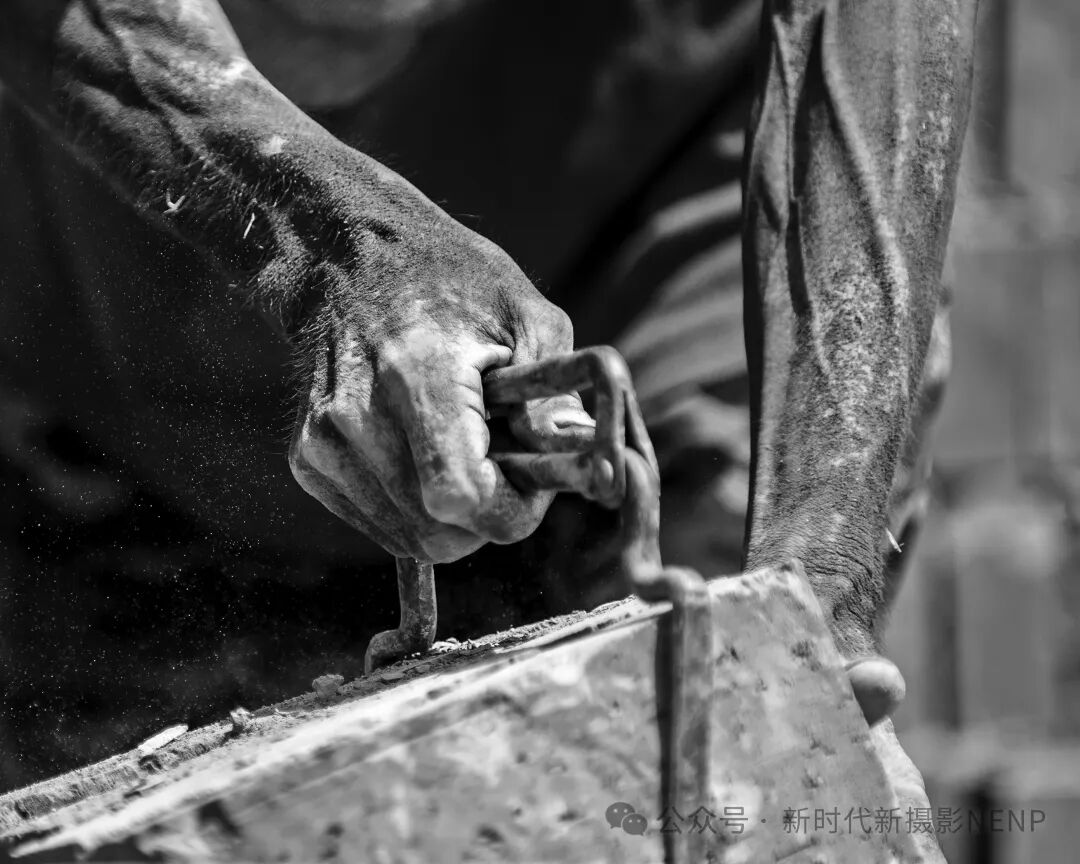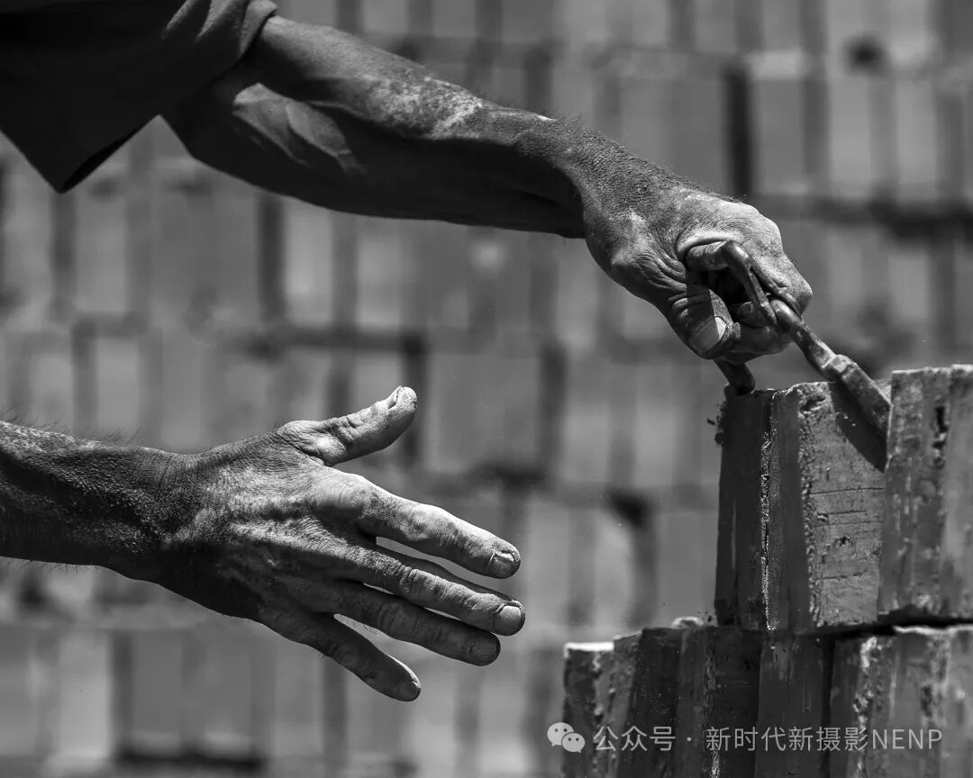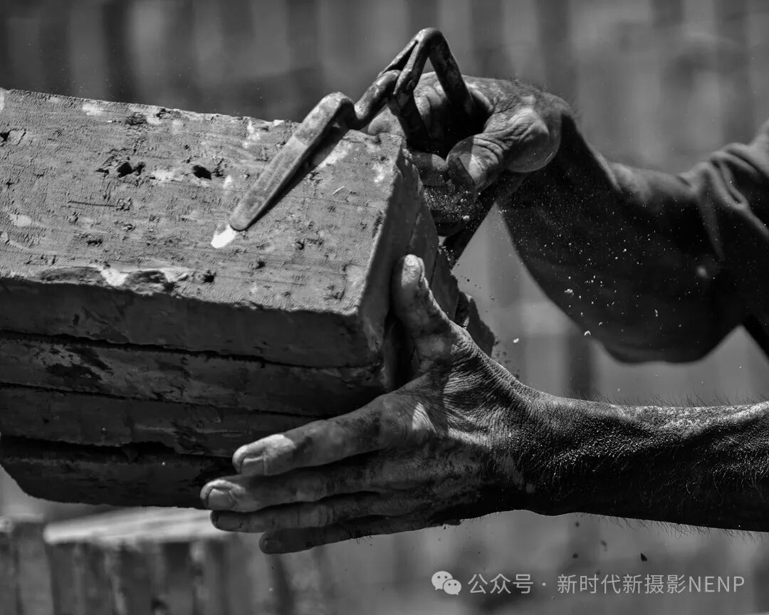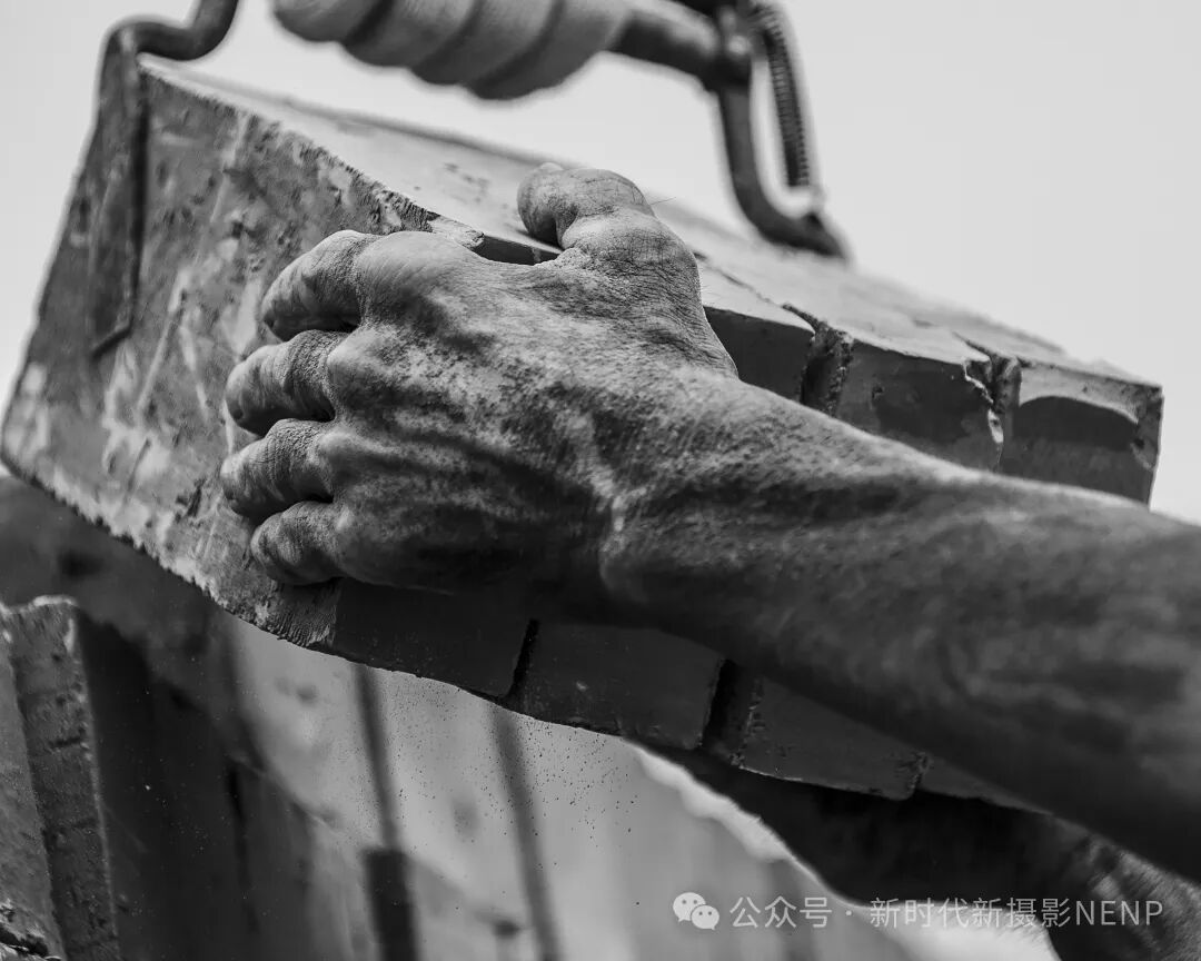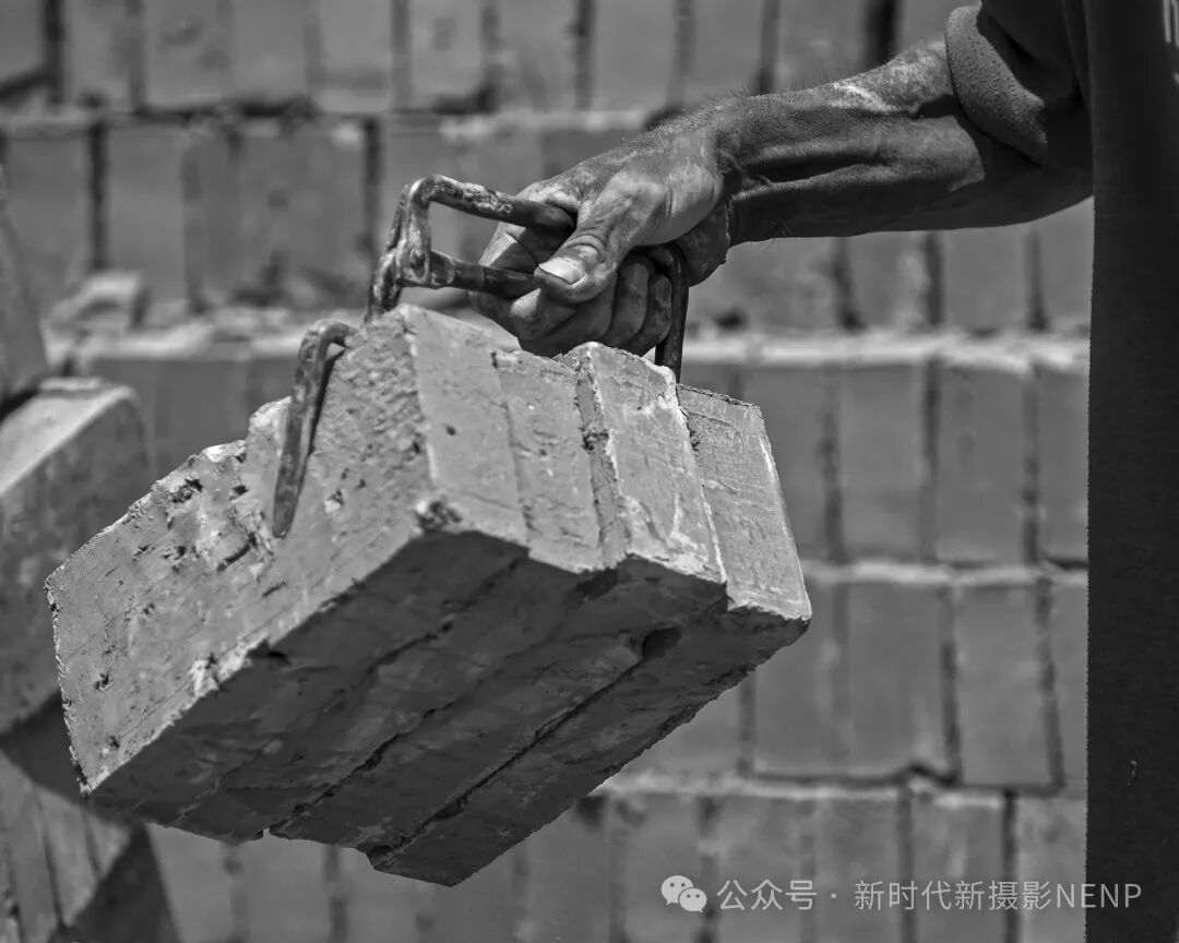 张金方老师的《力与美》组照(2)这幅摄影作品以独特的视角展现了搬砖坯农民工的辛勤与坚韧。照片中,农民工的双手仿佛铁钳般有力,沾满泥土和汗水,无声诉说着他们日复一日的辛勤付出。黑白色调的运用,使画面更显深沉与厚重,强烈的光影对比更凸显了劳动者的专注与执着。