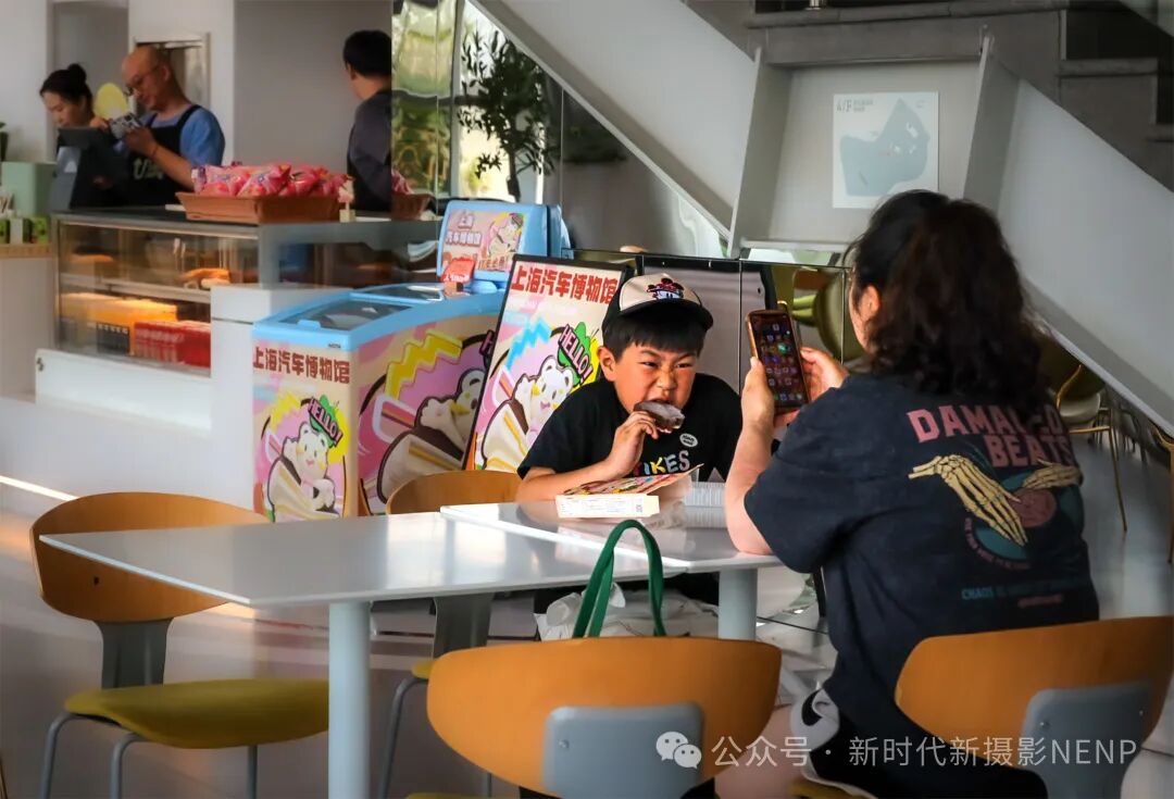 曹祥龙老师的《解馋》这张摄影作品以其独特的视角和生动的细节,成功地捕捉了日常生活中轻松愉快的瞬间。照片中的小男孩专注地享受着美食,他的表情和动作都透露出满足和愉悦。背景中的其他顾客和冰淇淋摊贩则增添了画面的生活气息,使得整个场景更加真实而生动。