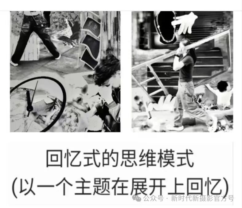在照片上构成图式方式,思索视觉图境语言地切入,释放不同思维模式的读入,直击人的心灵。也就是说艺术最终回归到人的精神上,也就是把人的心灵当做一种隐藏的时空纬度,用纵横在不同的时空里表达图片主题。