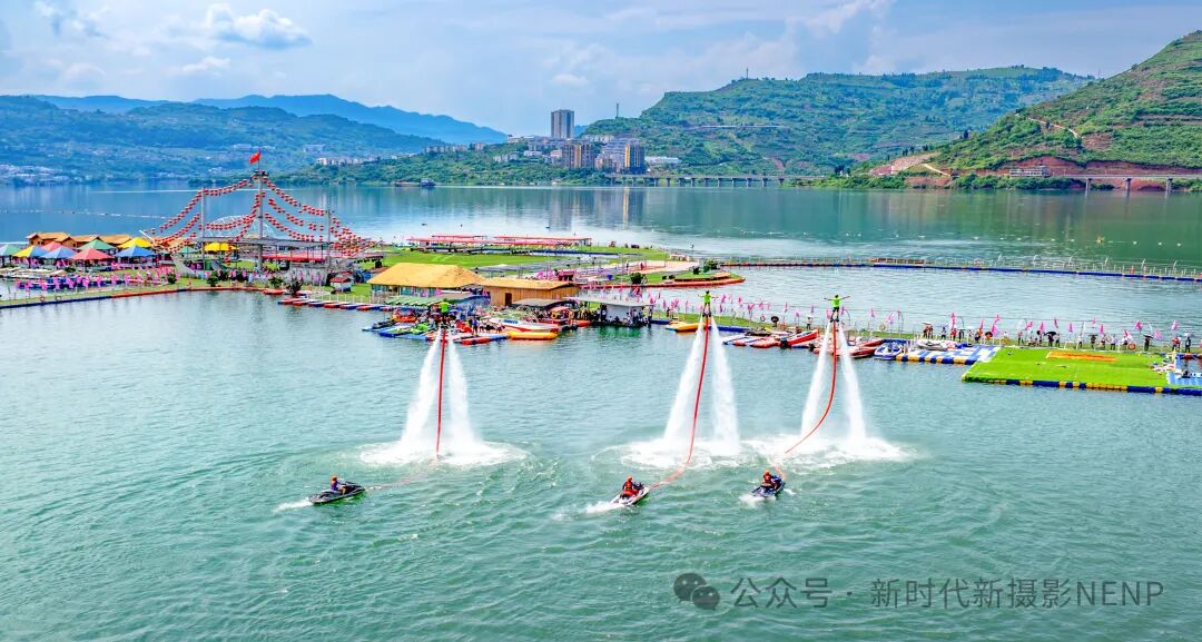 2024年5月18日,游客正在绥江县金沙水上乐园景区观看“水上飞人”表演,乐享清凉夏日。 曾三东/摄
