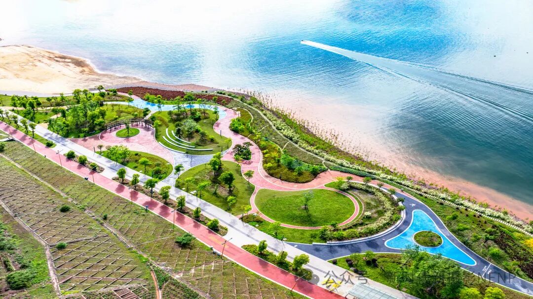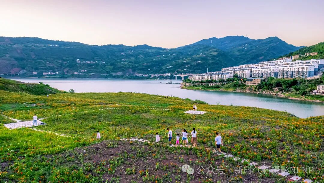 2024年5月4日,绥江县金沙江畔,结合库区滑坡治理新打造的湿地公园景美如画。