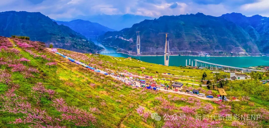 2023年3月19日,金沙江畔千亩桃花绽放,游客纷纷前来踏春赏花。 曾三东/摄