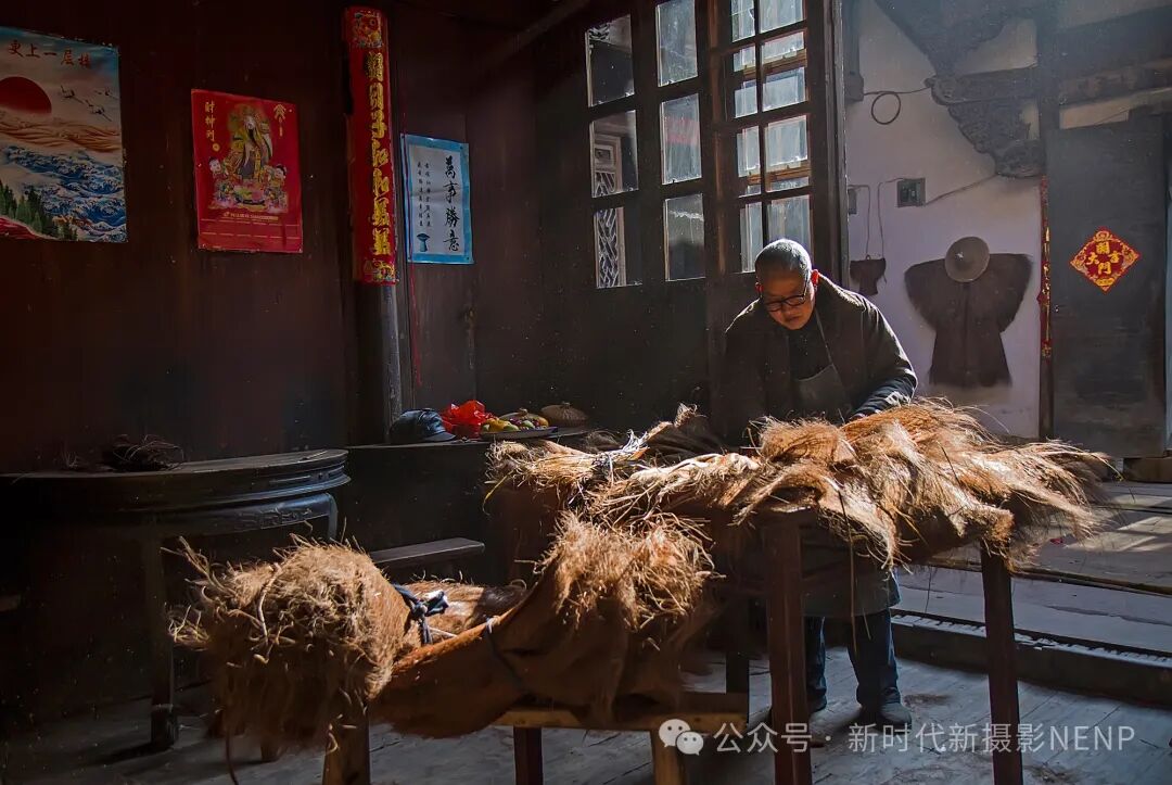 《织蓑衣老人》 沈剑秋/摄