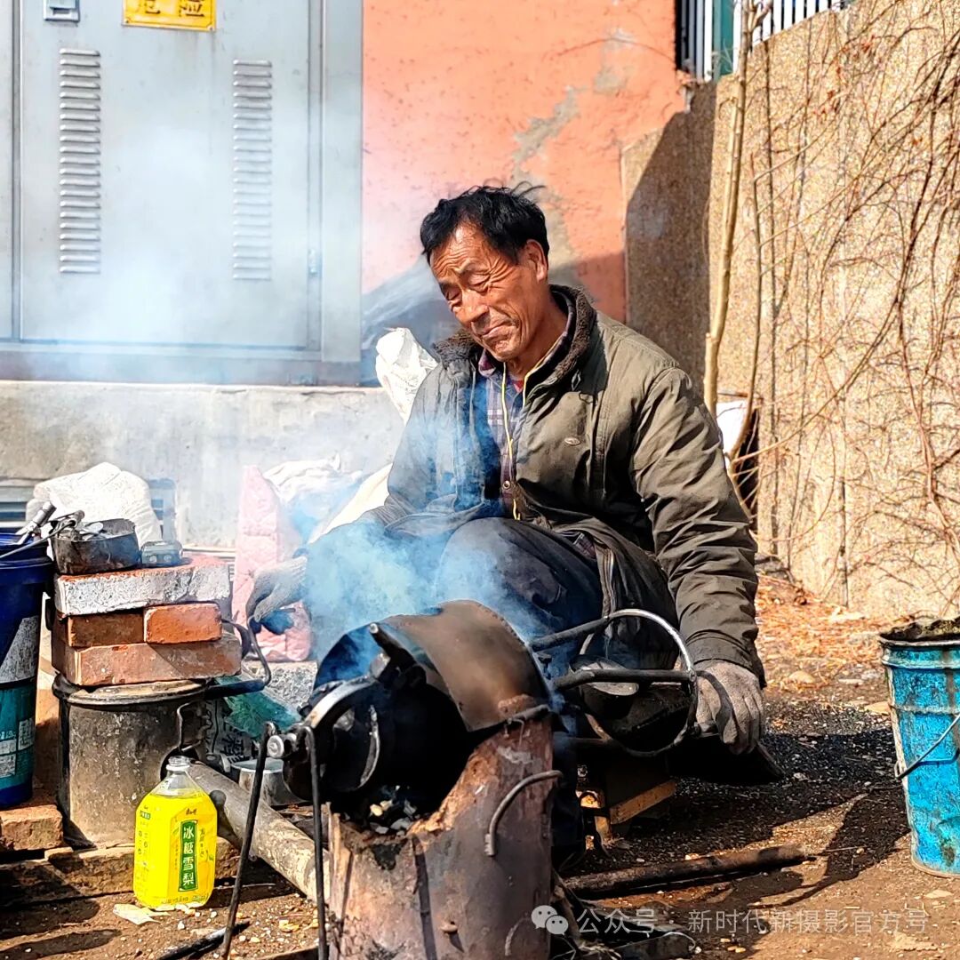 崩爆米花的老人为了生活,每天辛苦劳作。