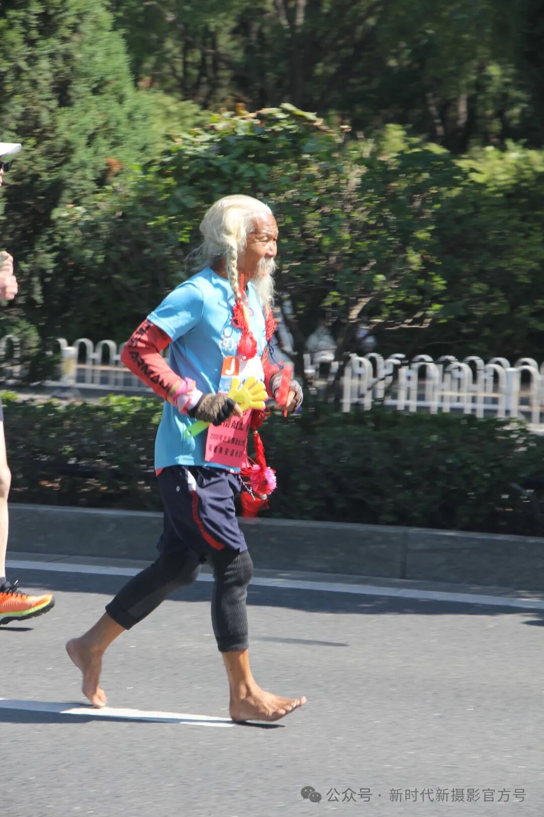 赵广平老师的《老当益壮》这幅摄影作品,以细腻的镜头语言,展现了老年人的活力与不屈。画面中的老人,赤脚奔跑,面带微笑,蓝色上衣与黑色裤子在绿意盎然的背景中显得格外醒目。他的身姿虽显老态,但那份对健康的追求与热爱,却如同年轻人一般热烈。