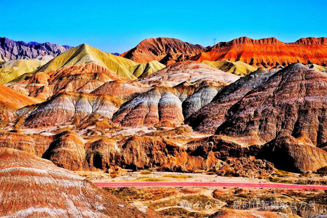 画面视角独特,色彩丰富绚烂,山峰在蓝天映衬下更显壮丽神秘。