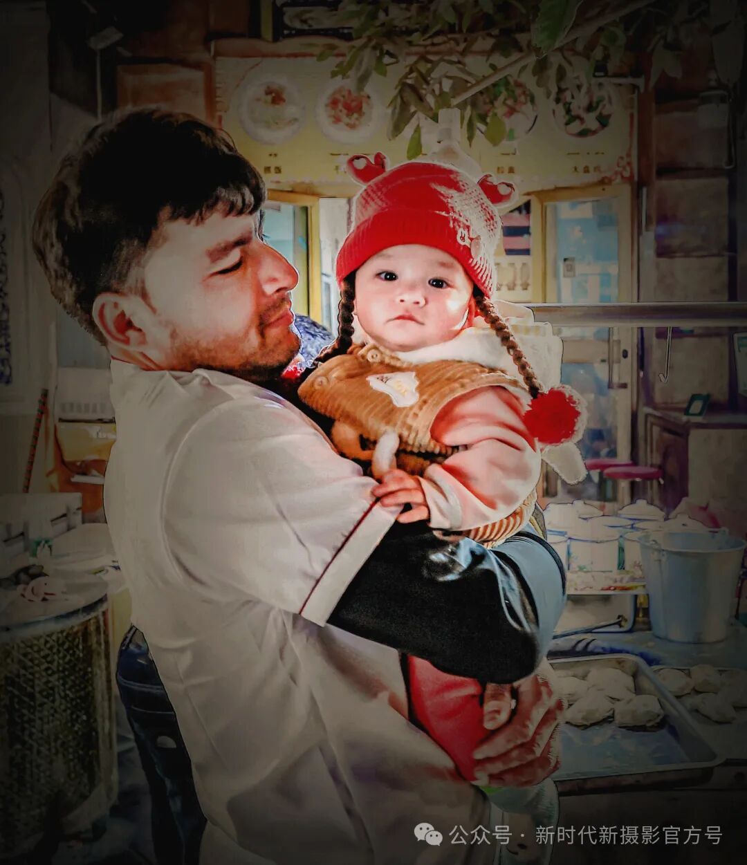 店主奶爸抱着自己漂亮的宝娃,那眼神和心里美的乐开了花。