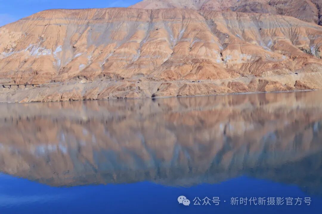 画面构图精妙,湖面如镜,倒映着连绵山脉,展现出天地交融的壮丽景象。