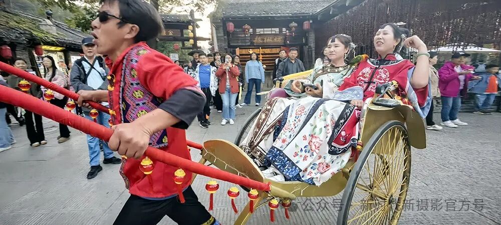 拍摄2024年10月4日河北省保定太行水镇,拉洋车体验和享受。
