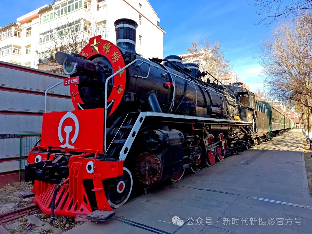 赵广平老师的《历史的记忆》这幅摄影作品令人印象深刻。画面中,黑色机车与红色车头形成鲜明对比,金色“锦绣”二字更显历史厚重。背景现代建筑与树木的映衬,凸显了时代的变迁。晴朗天空下,机车静静伫立,诉说着过往辉煌。