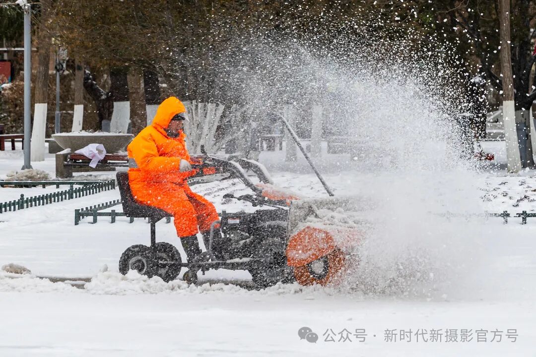 2024年2月21日,摄于济南市泉城广场。为方便游客,环卫工人不辞辛苦铲冰除雪。