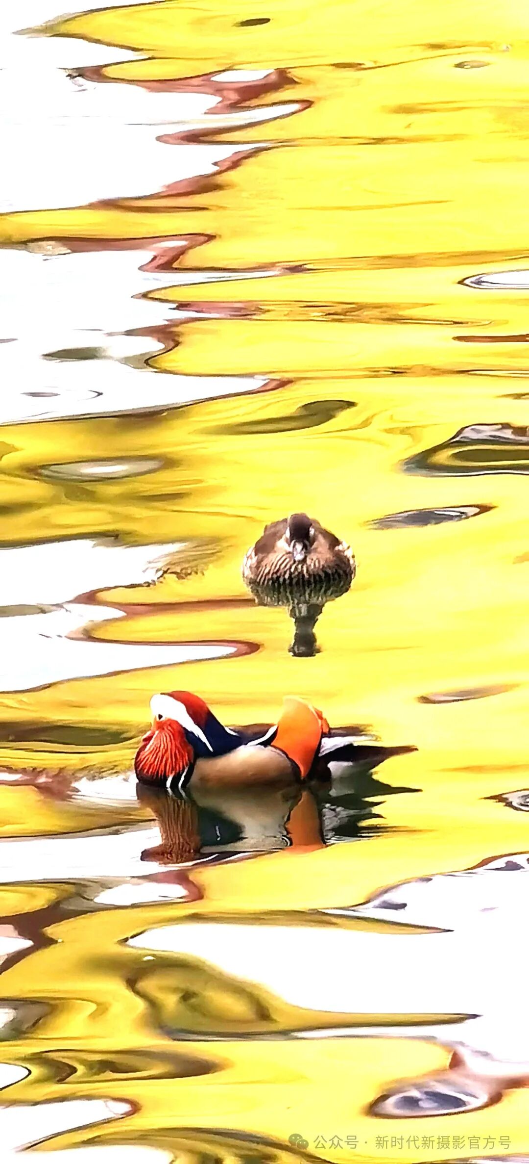 刘建中老师的《鸳鸯》这幅手机摄影作品,构图精妙,色彩绚烂。