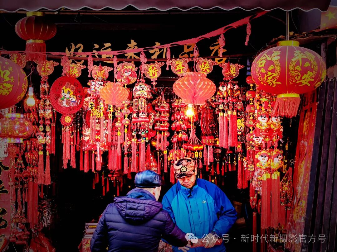 传统新年到,到处添红彩,红包,红灯,红符,红春联红色一片,给新年带来吉祥氛围。