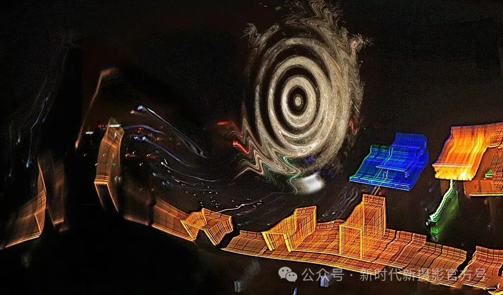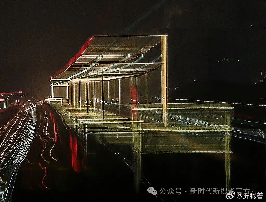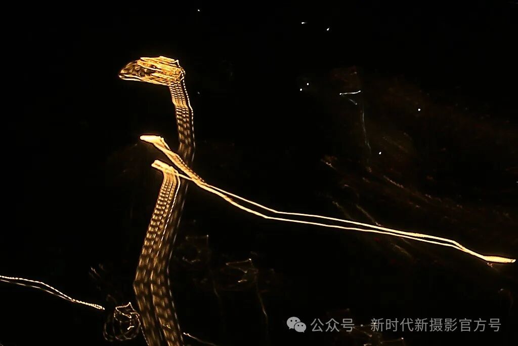 北京冬季,在西山上,用单反慢门摇拍西五环灯光,变形定格的光线犹如一条吐信的花蛇。