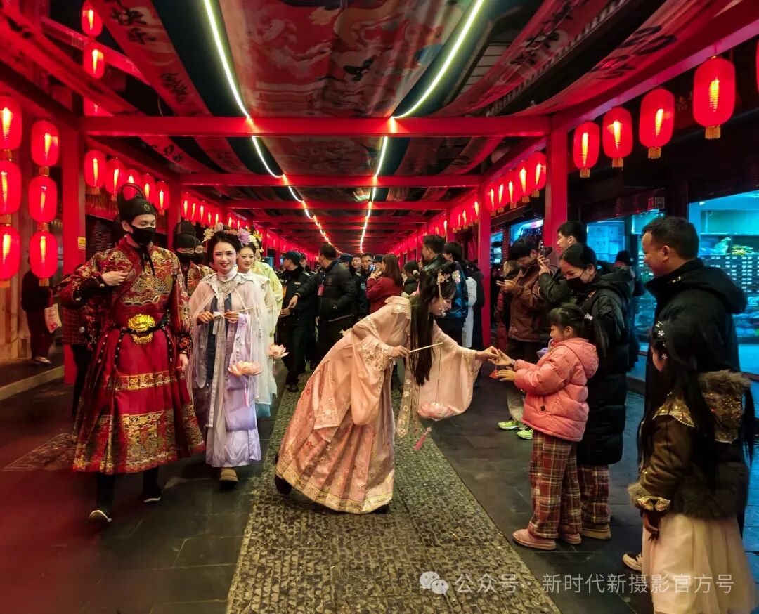 2025.2.4夜四川省自贡市富顺县举办了丰富多彩的新春庙会,舞龙舞狮,打连萧,汉服秀等多项文化活动在文庙正街展演巡游与观众互动,闹闹热热过新年。