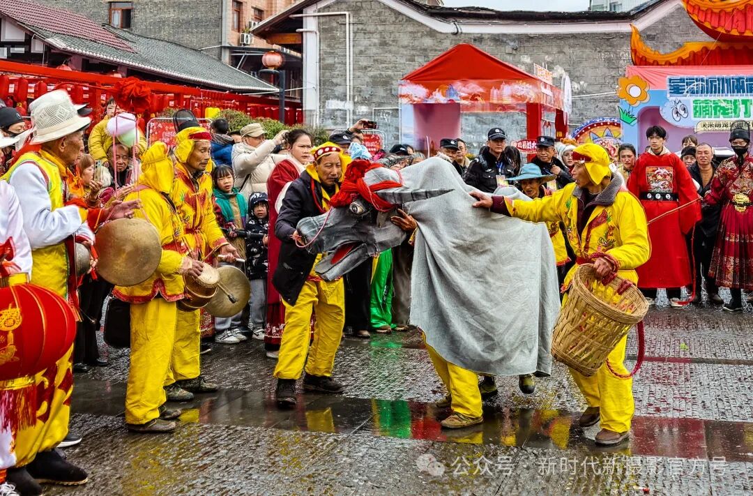 2025.2.3(正月初六)四川省自贡市富顺县举办了丰富多彩的新春庙会,极具地方特色的非遗文化活动-牛儿灯在文庙广场表演闹春。