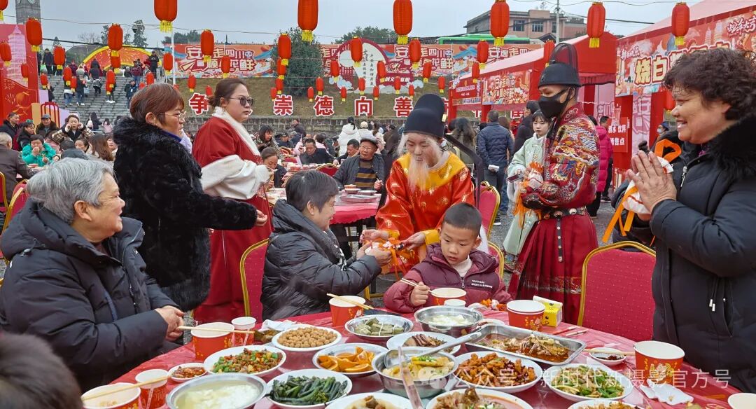 2025.2.4(正月初七)四川省自贡市富顺县在文庙广场举办了新春庙会和为期一周的千人豆花宴,万人流水席以宣传富顺地标特色饮食,招待四方宾客。