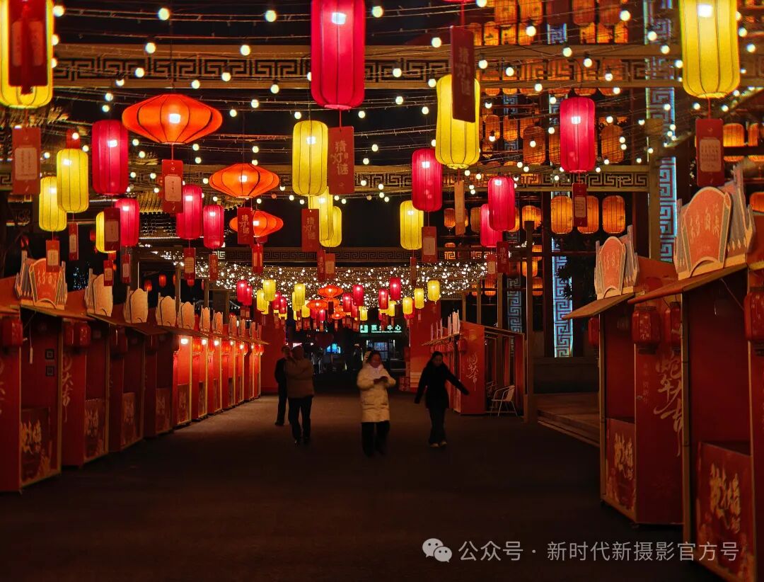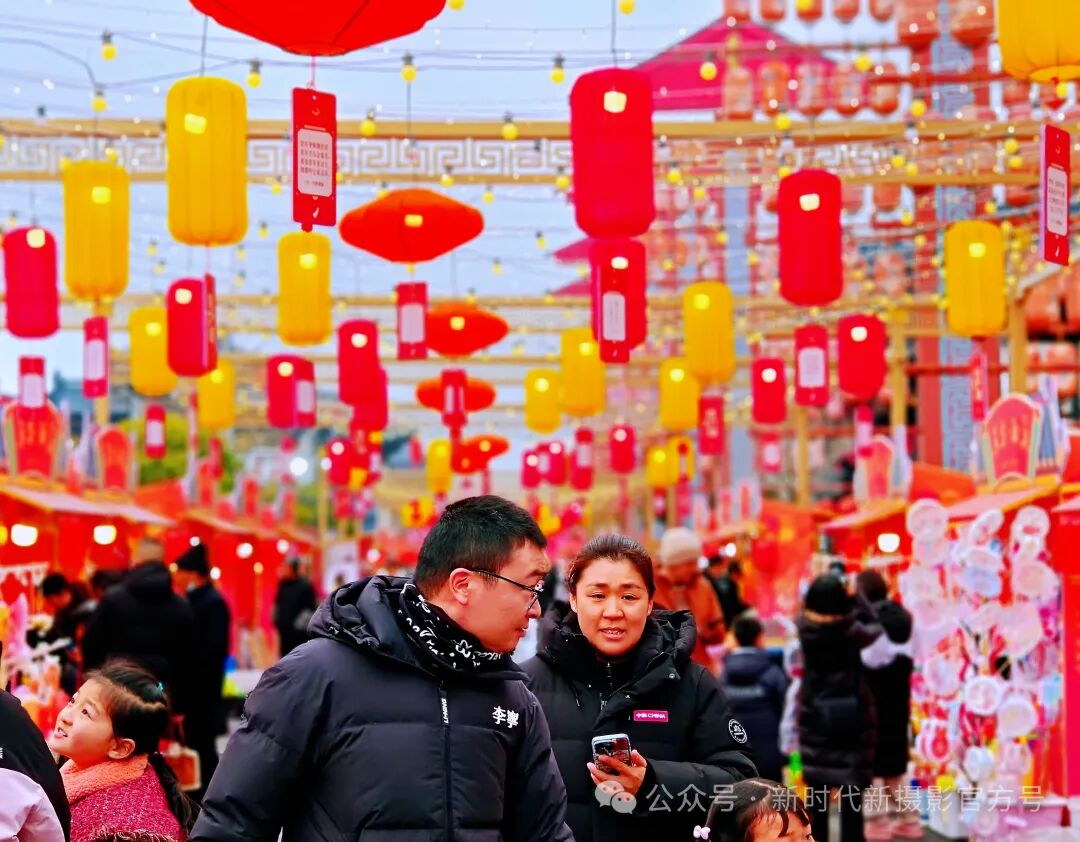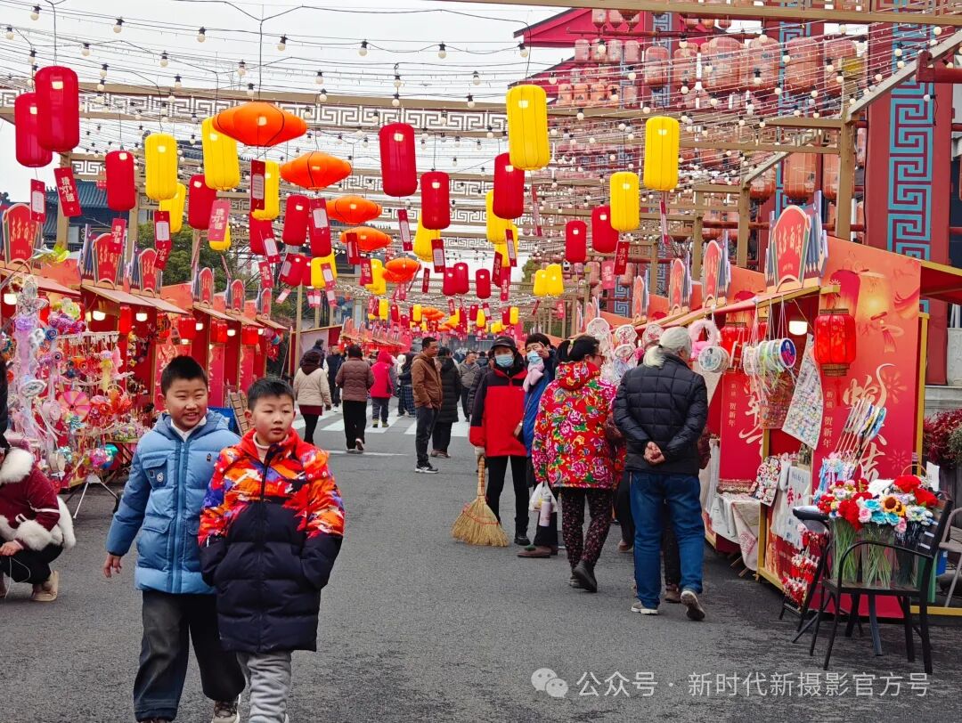 元宵节西溪古镇街头,红黄灯笼高高悬起,似点亮了冬日的温暖。摊位间人来人往,热闹非凡。两个孩童笑容灿烂,欢快穿行,周围五彩的货物琳琅满目,满满的节日氛围,让人驻足。