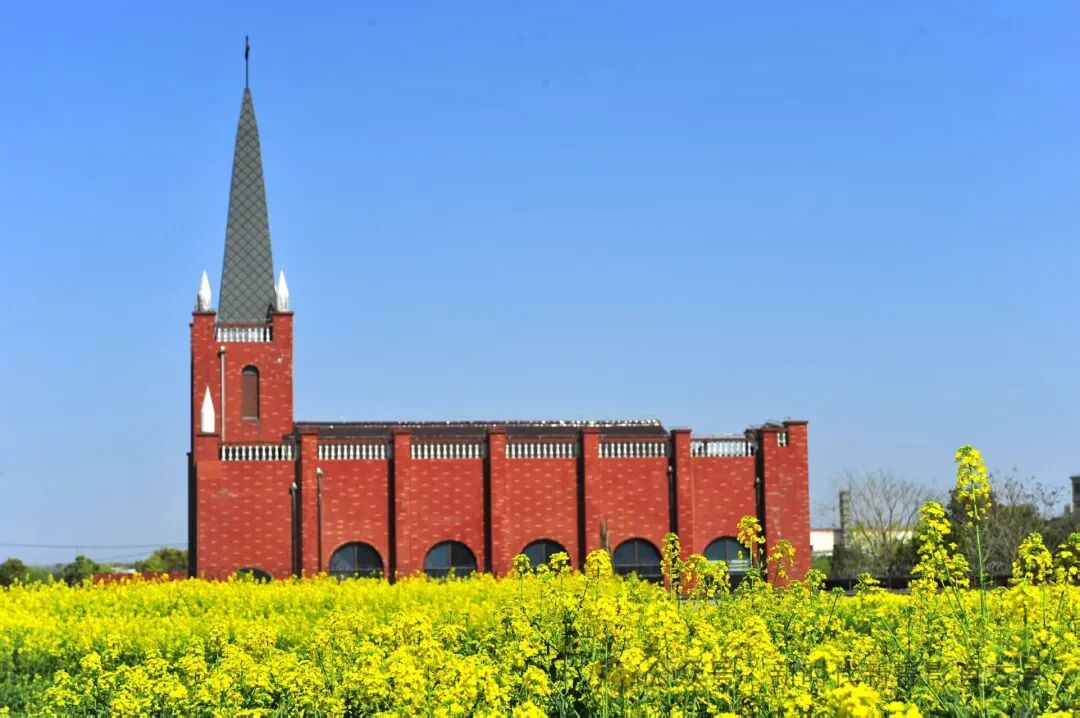 《春日油菜花海中的红砖教堂》 周永骏/摄