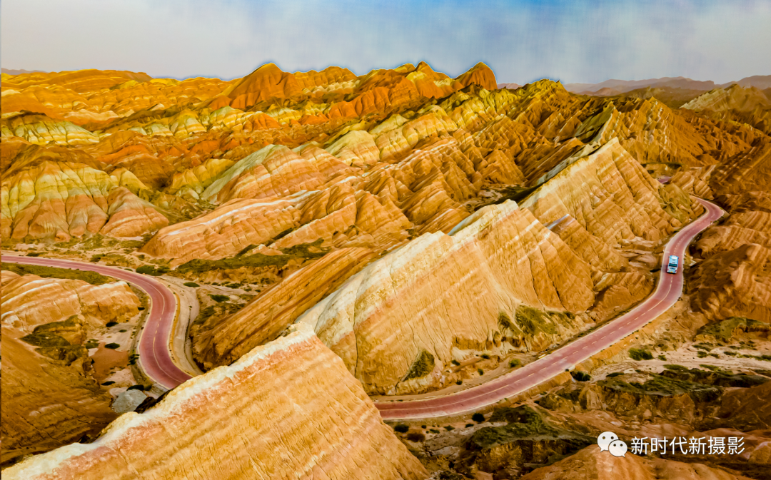陈辉球老师的《汽车画中行》这幅航拍作品的主题是丹霞地貌和蜿蜒的公路。作者通过航拍的方式,将丹霞地貌的壮丽景色和公路的曲线美展现得淋漓尽致。