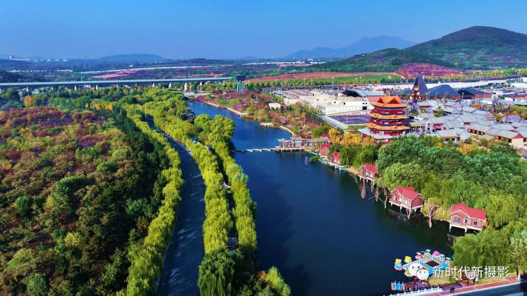 航拍视角下的泰安陡山河公园:秋色迷人 风景如画