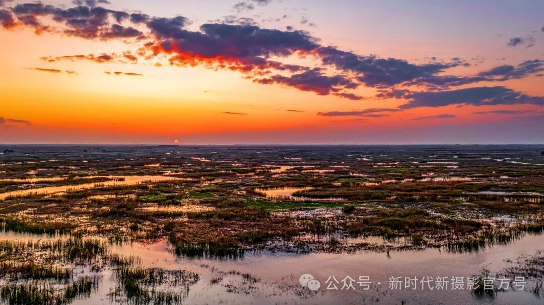 《晚霞映红湿地美景》 孙建新/摄