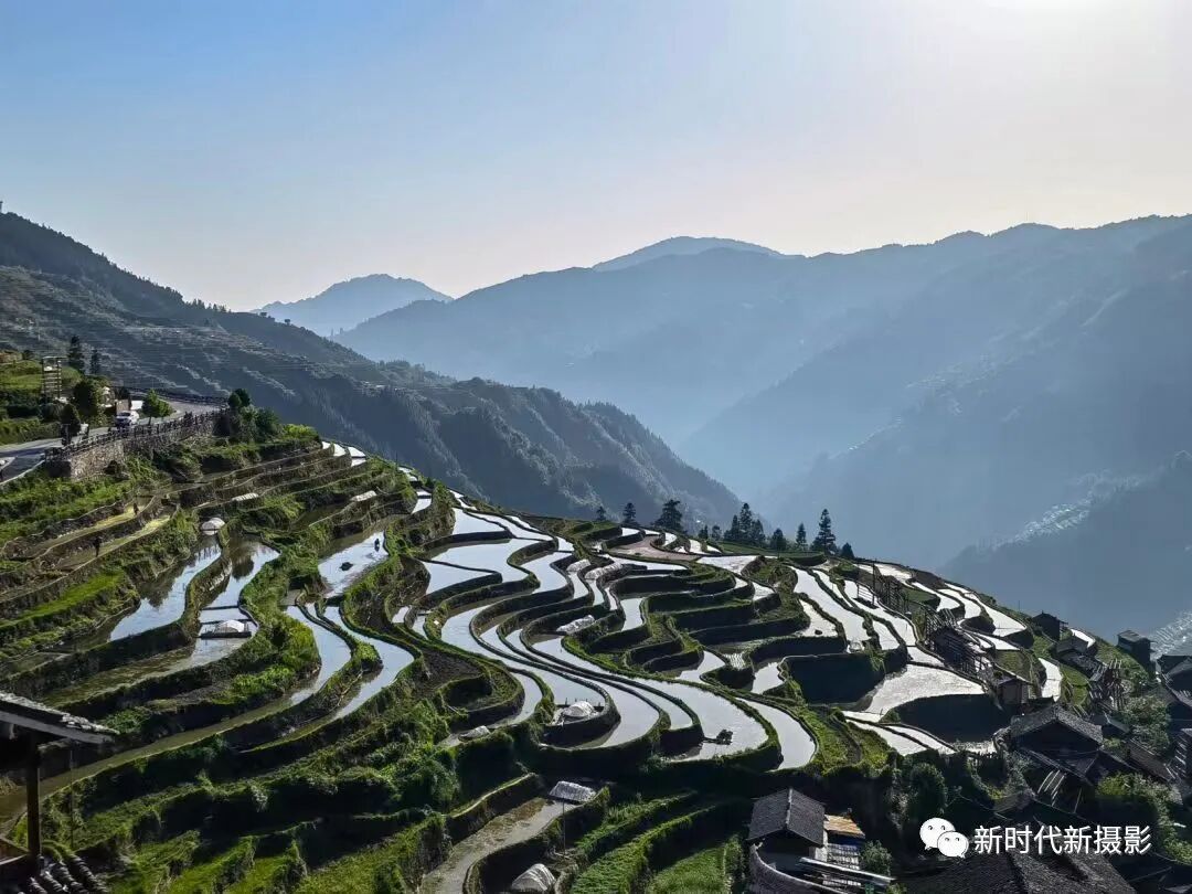 这里的景色,宛如中国传统水墨画的一种深刻表现,墨绿的稻田和洁白的水流交织在一起,形成一幅和谐宁静的画面。每一道梯田都承载着农人的辛勤汗水,也寄托着对丰收的殷切期盼。在和煦的阳光下,梯田泛着金黄色的光芒,那是丰收的希望,也是生活的喜悦。