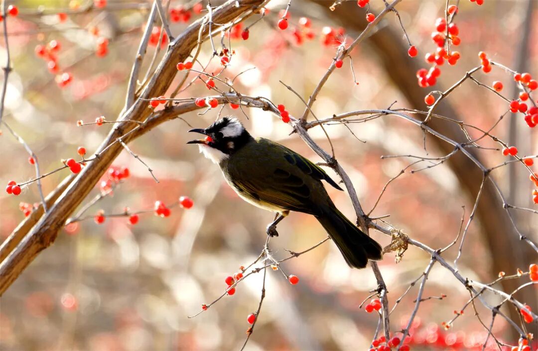 《白头鹎吃忍冬果》
