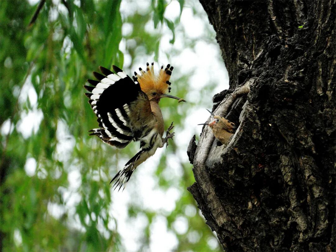 《戴胜鸟喂雏》